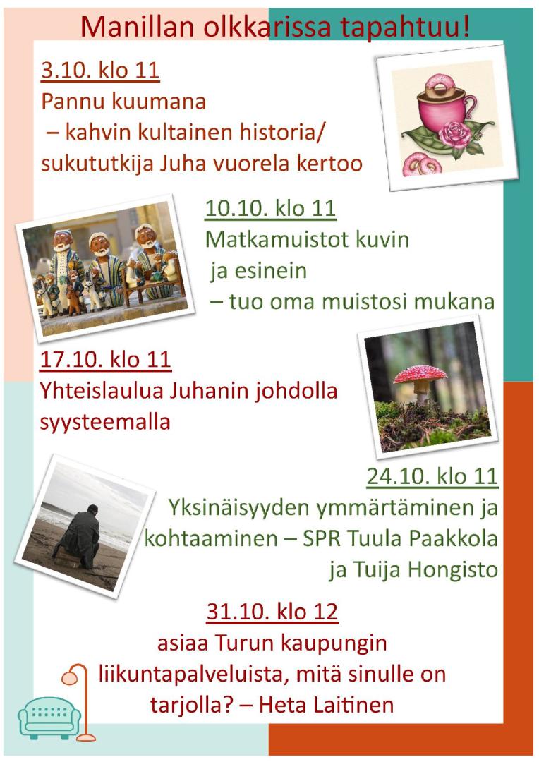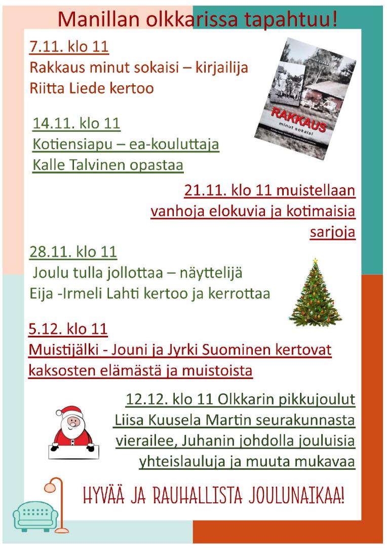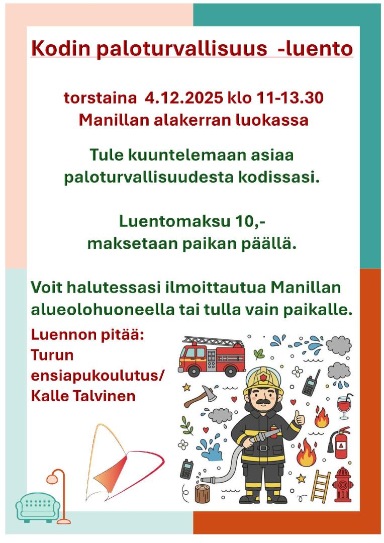 Manillan (It.Rantakatu 64) olkkari on avoinna perjantaisin klo 10 - 14. Tule portin jälkeen heti oikealla olevasta ovesta.